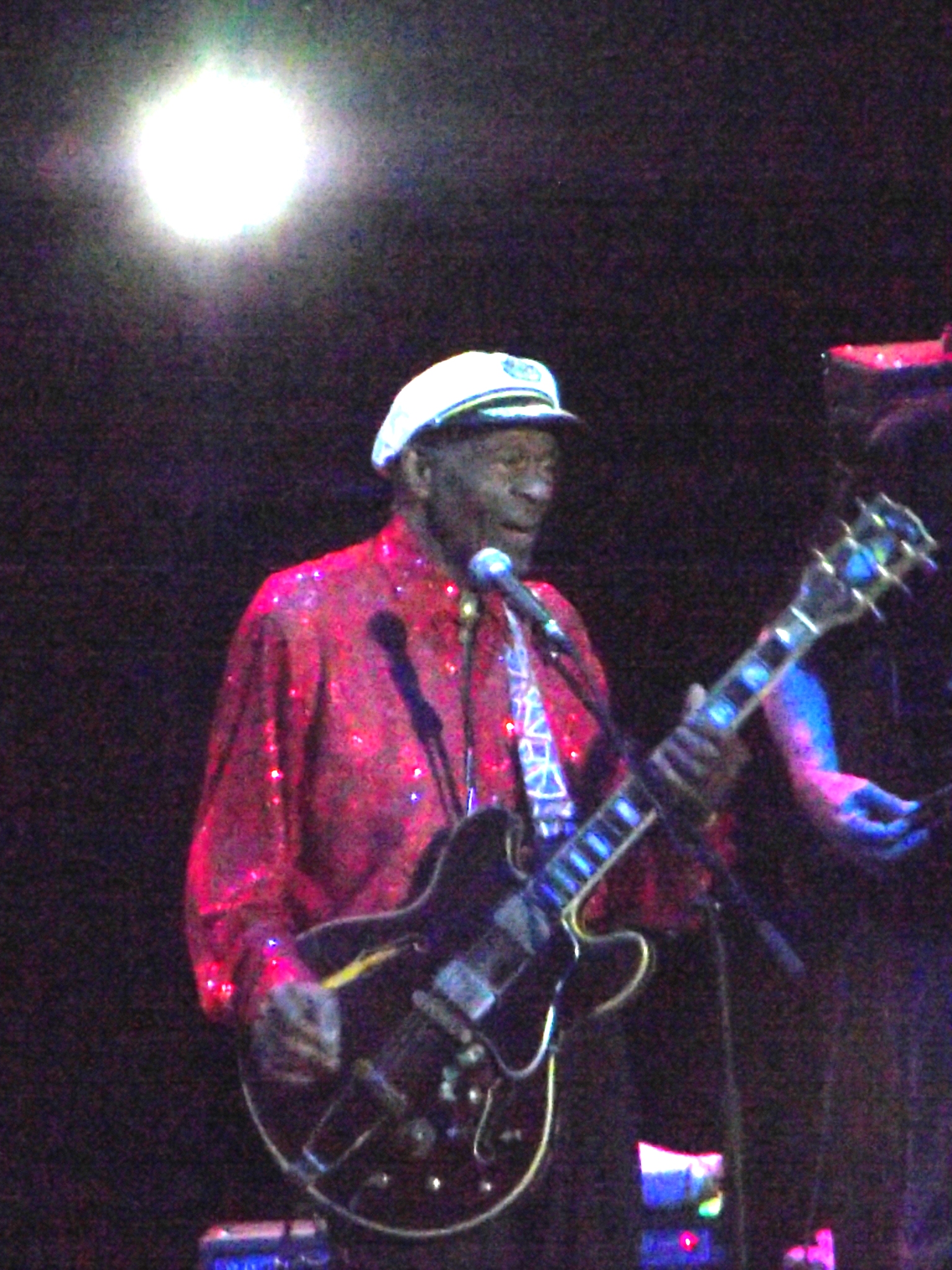 Ok, seamos objetivos, es verdad, se le olvidaban las notas, tocaba en otros tonos, cambiaba los fraseos de las canciones… pero QUÉ IMPORTA!!! es CHUCK BERRY!! es quien inventó el Rock and Roll, le dio un nuevo sentido a la guitarra y a los solistas de guitarra, fue inspiración para muchos artistas, entre ellos The Beatles, es un grande, tampoco se trata de celebrarle todo lo que haga hoydía, pero es comprensible, por favor… tiene 86 años!! es un gran mérito que siquiera se haya plantado en el escenario a tocar!! la verdad es que yo me fui muy conforme, había visto varios vídeos en llutuv, y sabía como estaba cantando y tocando en el 2013, aún así fui igual a verlo, y puedo decir que alguna vez vi a mi héroe Chuck Berry en vivo y en directo.